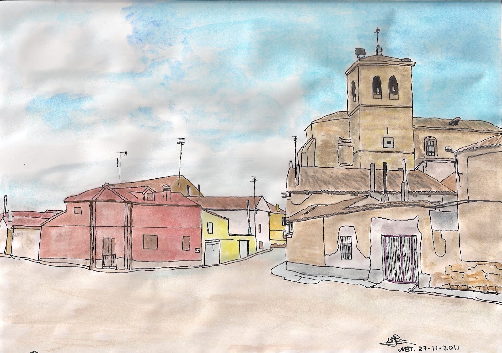 Este dibujo lo realicé estando en la mili en el Gobierno Militar de Santander de la Plaza de la Porticada el 23-12-1983