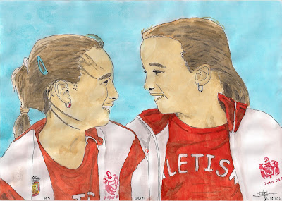 Como ya de por si es complicado el distinguir a tod@s los atletas, tenemos a estas dos hermanitas que le confunden a uno en el momento de animarlas.